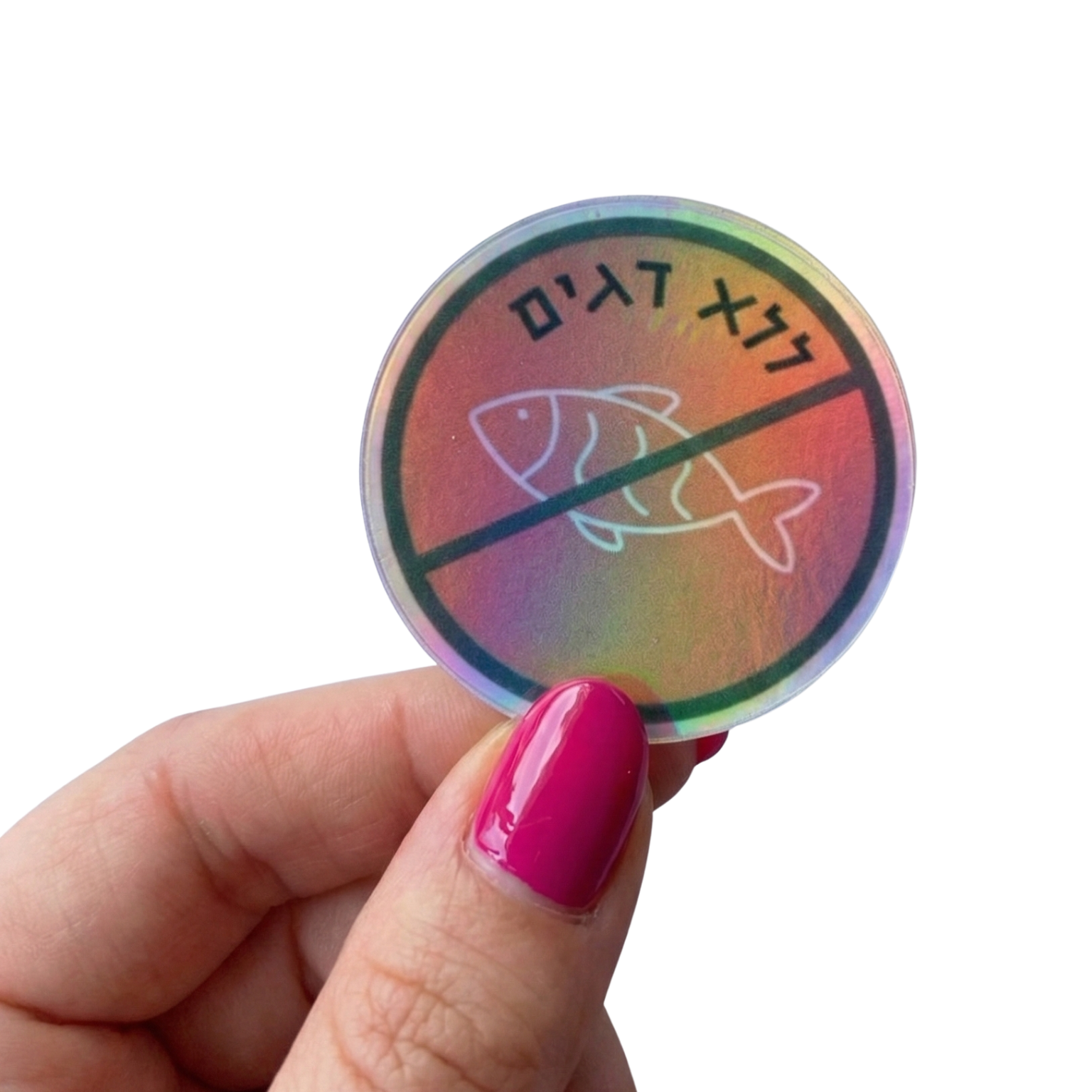 מדבקה הולוגרפית "ללא דגים" - סימון אלרגיה לדגים (5 ס"מ)